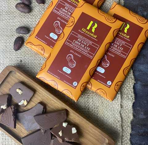 Barretta 57% cioccolato alle arachidi fondente Rizcolat: barretta di cioccolato Premium a base di cacao pregiato dell'Indonesia
